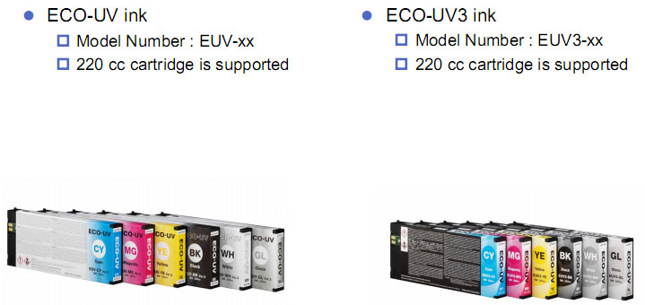 ECO-UV EUV3 ink 特點(diǎn):白色白,彩色鮮艷屬于中性墨水。