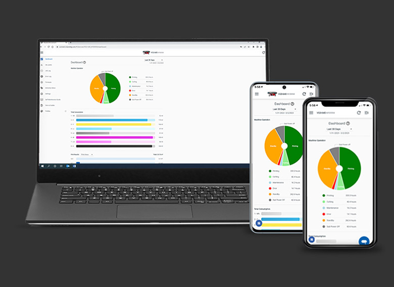 使用者友好的Roland DG Connect 應用程式可讓您詳細了解印表機,同時保持設備以最佳效能運作。機器監(jiān)控助理可與您的設備完美配合,從而減少停機時間并提高效率。